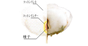 コットンの花は衣料に使用される「リント」、種子を取り巻く産毛の「リンター」、油脂の原料となる「種子」からなりますが、ベンリーゼには良質の「リンター」を使用しています。
